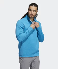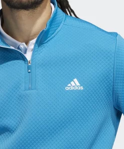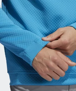 Keep your play steady even when the weather is temperamental. This adidas golf pullover has you covered when it gets cool and damp on the course. The water-repellent finish sheds light drizzle. The quarter-zip design has a stand-up collar for extra protection, and banded cuffs and hem seal out the chill.