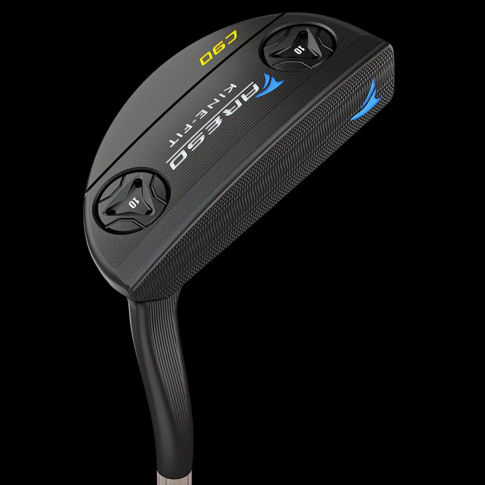 C90 features a heel-shafted hosel with heel-toe weighted mallet design for Strong-Arc. C90 is forged and machined on 4-axis CNC. Alignment is precisely designed to improve aim at address