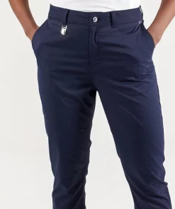 Cheer pants, comfortable and stretchy golf trousers in soft twill quality, one of our most popular models. Made from 89% recycled, wrinkle-free polyester that breathes and keeps you cool. Comfortable and flattering fit with a high waist and two front and back pockets as well as a practical and stylish ball marker.